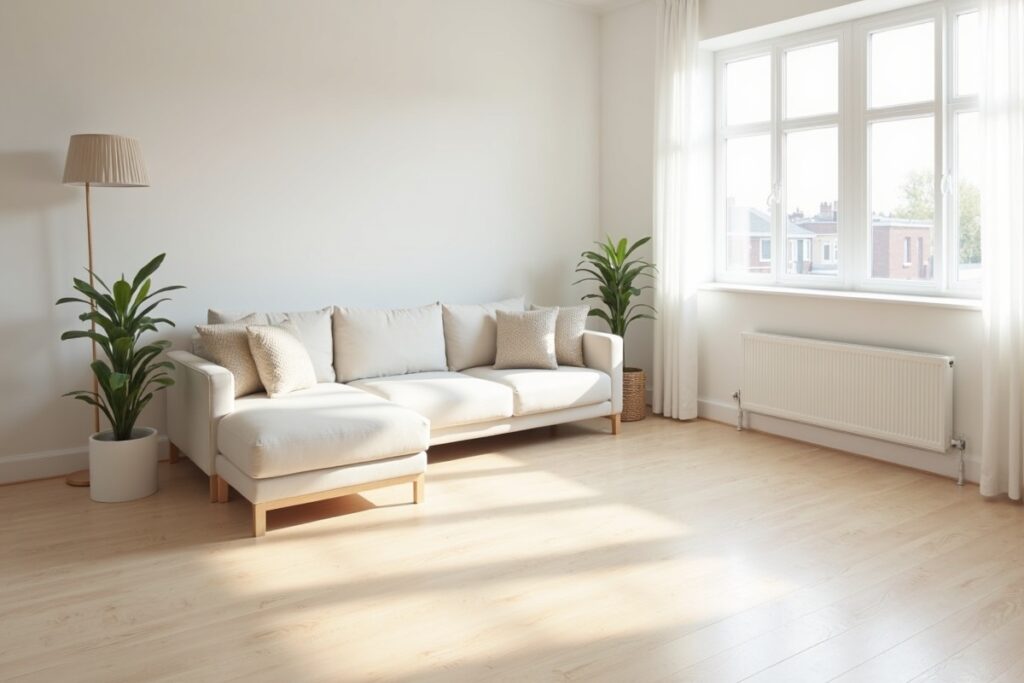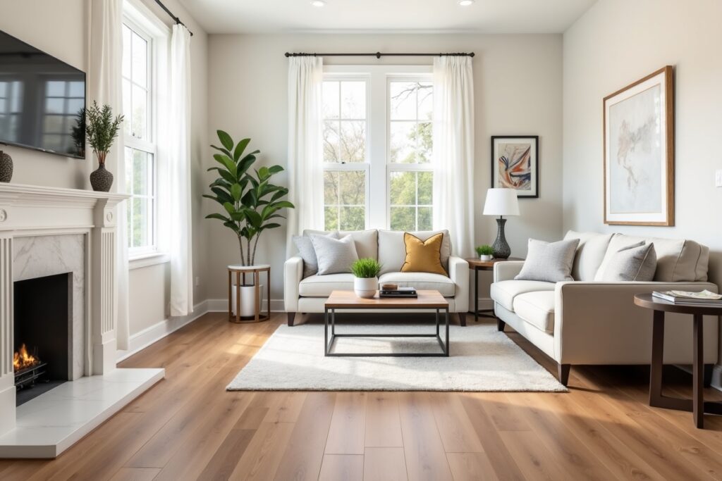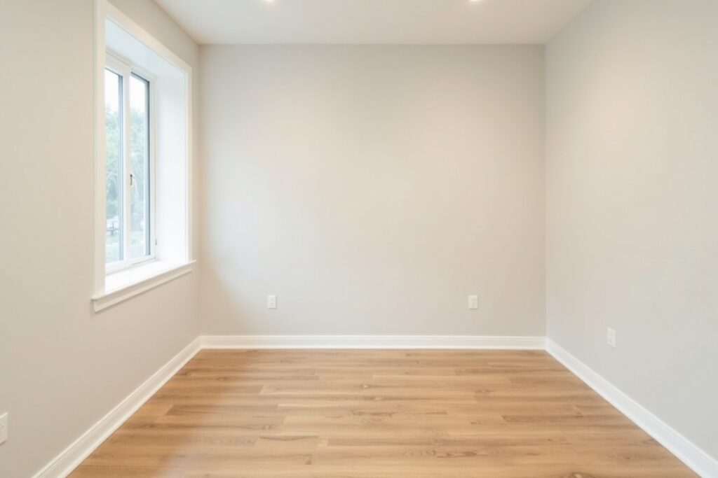 Modern townhouse flooring and baseboard installation with attention to detail.