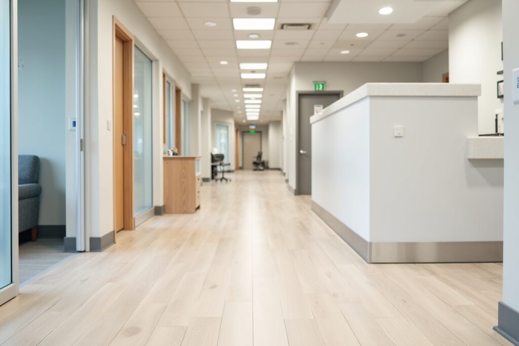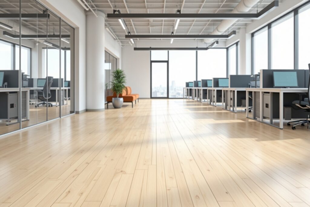 Complete LVP flooring installation for a 3,500 sq ft office suite. Project completed in 2 days with minimal disruption to business operations.