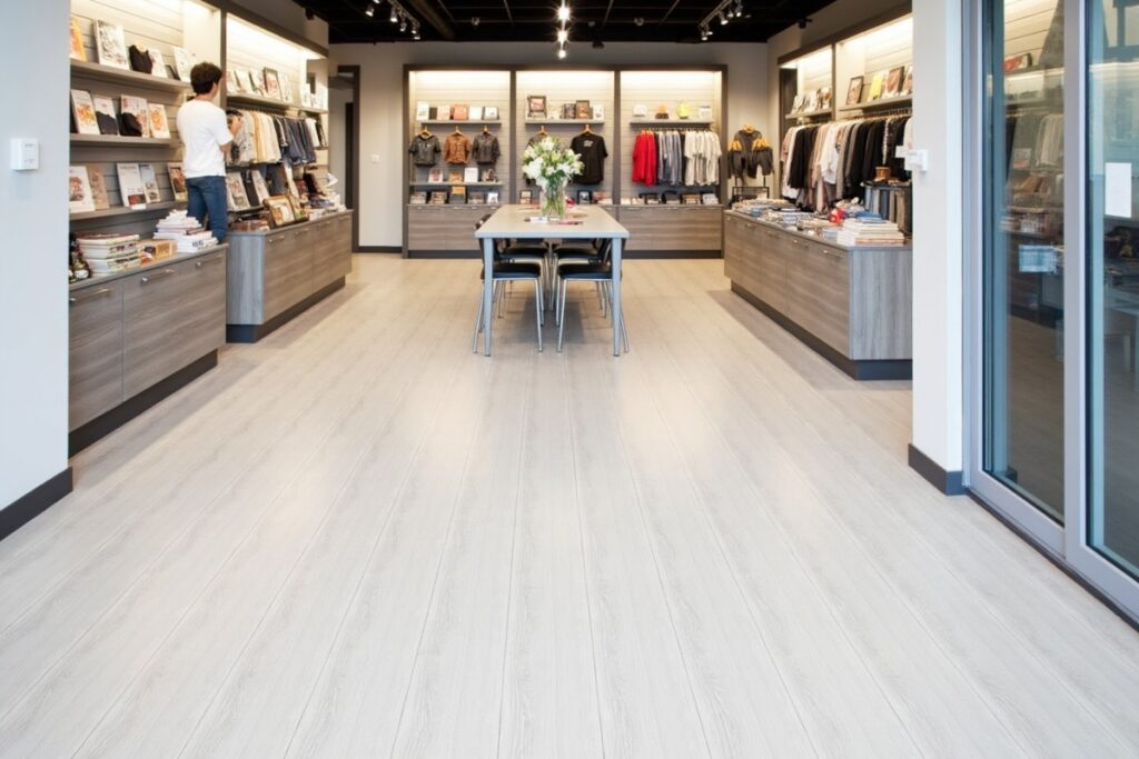 High-traffic retail space flooring installation completed overnight to avoid business interruption.